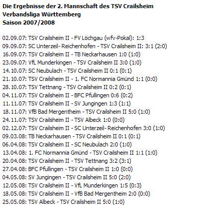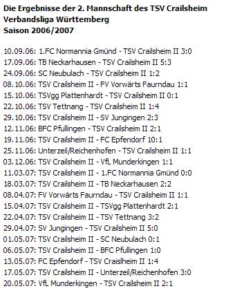 Alle Ergebnisse des TSV Crailsheim II findest Du auch unter www.fussball.de Die aktuellen Ergebnisse der Verbandsliga Württemberg gibt's unter www.fussball-in-bw.de